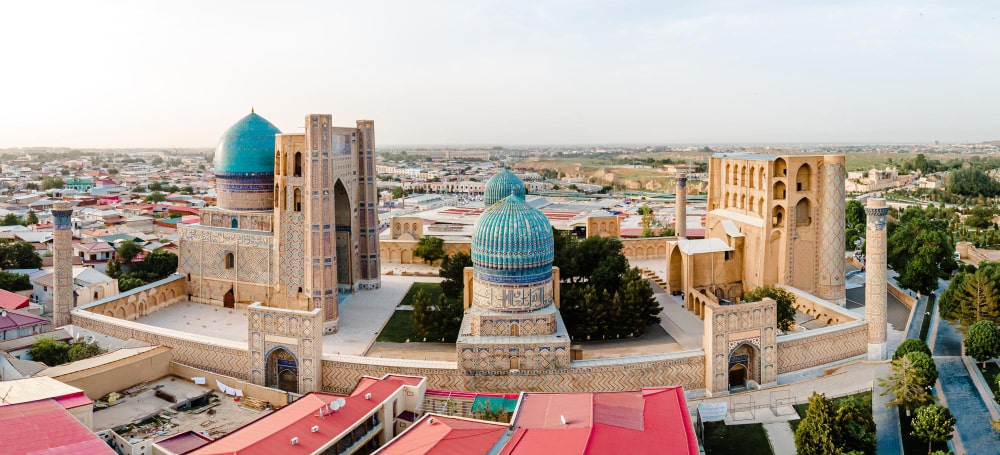 سمرقند، قلب تاریخی ازبکستان و یکی از قدیمیترین شهرهای جهان است. این شهر زمانی پایتخت امپراتوری تیمور بود و امروزه نیز همچنان شکوه خود را حفظ کرده است. میدان ریگستان (Registan Square) با سه مدرسه باشکوه و گنبدهای فیروزهای، یکی از زیباترین آثار معماری اسلامی دنیاست.