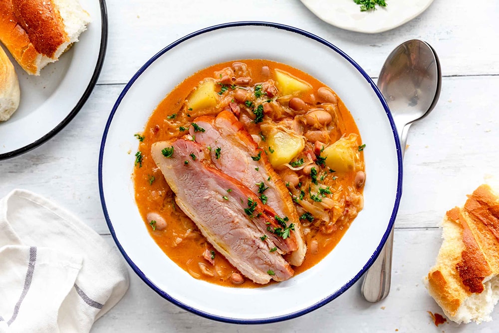 سوپ سنتی اسلوونی است که با کلم ترش، لوبیا و گوشت دودی تهیه میشود. این غذا بیشتر در مناطق کوهستانی محبوب است و طعمی غنی و مقوی دارد.