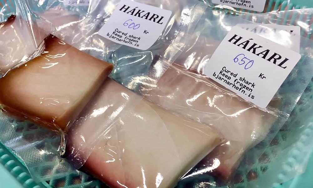 یکی از معروفترین غذاهای سنتی ایسلند، گوشت کوسه تخمیرشده است. این غذا طعمی بسیار خاص و بوی تندی دارد و اغلب بهعنوان تجربهای ماجراجویانه برای گردشگران شناخته میشود.