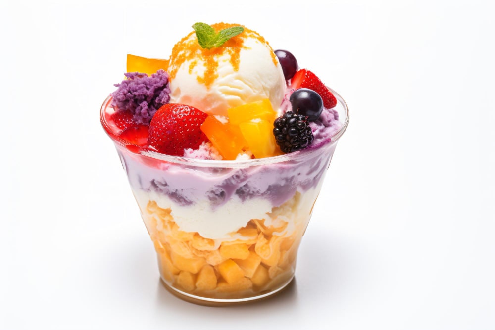 دسری خنک و رنگارنگ از یخ خردشده، میوههای استوایی، لوبیا، بستنی و ژله که مخصوص هوای گرم و مرطوب کشور است.